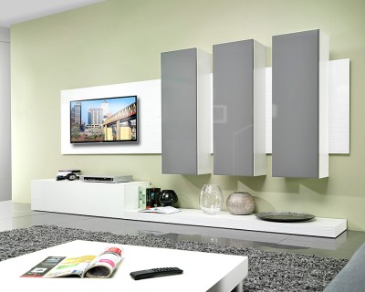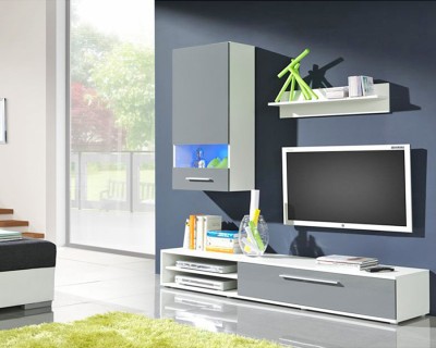 Гостиная Солюк Платина 0859 / Белый Фасадный 0101