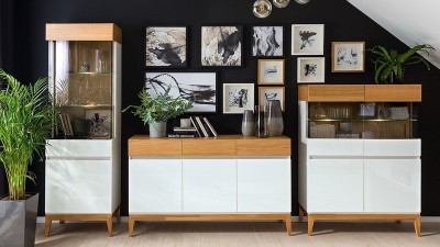 Гостиная Сохо 9 Белый Фасадный 0101 / Дуб Сонома 3025