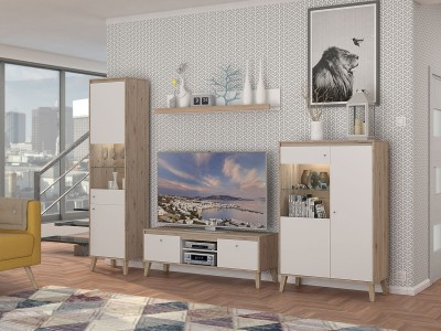 Гостиная Сохо 11 МДФ Белый DM635-6 / Дуб Сонома 3025