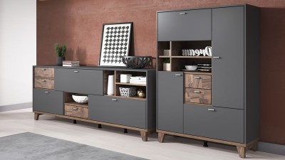 Гостиная Сохо 5 Черный 0190 / Белый Фасадный 0101