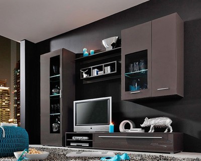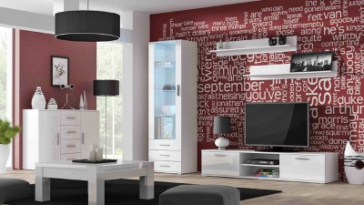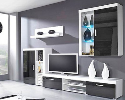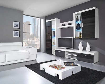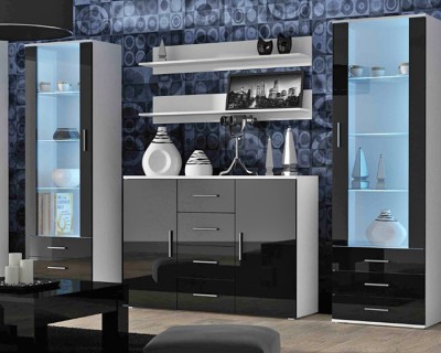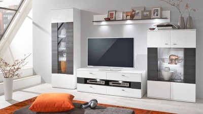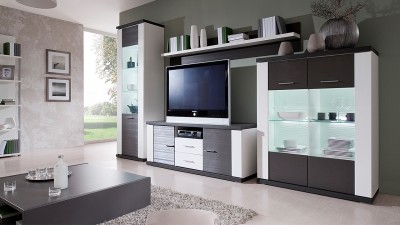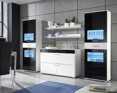 Гостиная Самба Черный 0190 / Белый Фасадный 0101