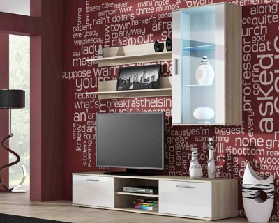 Гостиная Сохо 13 МДФ Белый DM635-6 / Дуб Сонома 3025