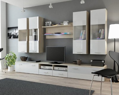 Гостиная Сохо Белый Фасадный 0101 / Дуб Сонома 3025